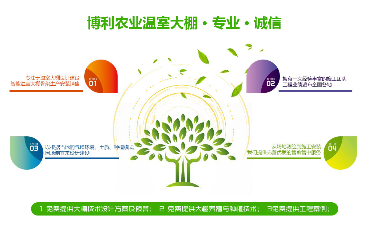 安陽(yáng)博利農(nóng)業(yè)科技有限公司,是一家專業(yè)生產(chǎn)溫室大棚的現(xiàn)代化企業(yè)。公司擁有大棚材料生產(chǎn)線,各種加工折彎,縮頭等設(shè)備,及專業(yè)研發(fā)、技術(shù)人員,提供設(shè)計(jì)、制作、安裝及售后全程服務(wù)。公司在鍍塑鋼管大棚,幾字鋼、C型鋼溫室大棚,薄膜連體大棚,玻璃智能連棟大棚,反季節(jié)蔬菜溫室大棚,花卉大棚…
